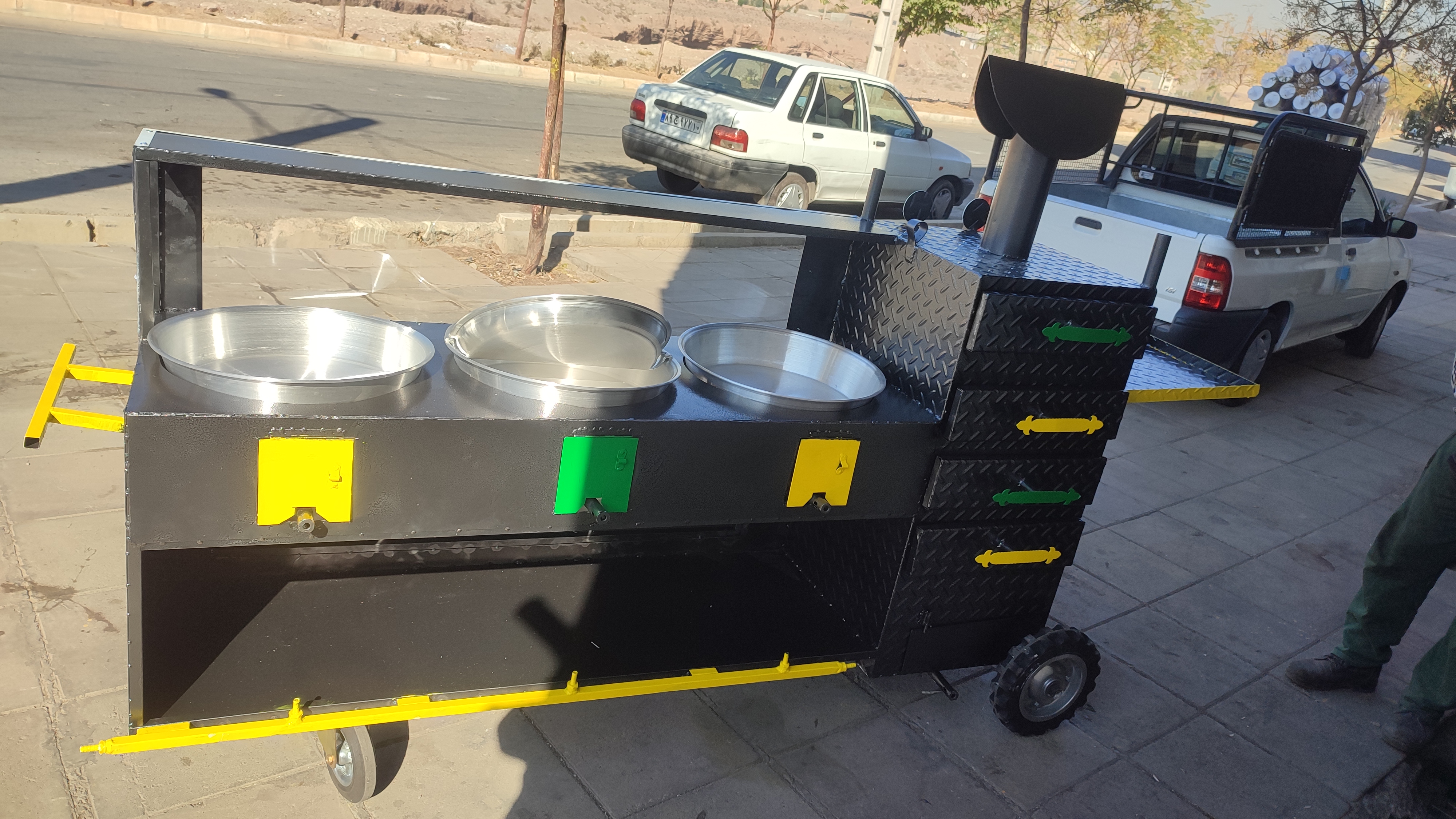 دستگاه بلال تنوری لبو باقالی نخودبا ورق سه میل درجع یک چرخ فرقونی و گردون ترمز دار برای جا به جایی راحت تر رنگ پودری کوره ای استاتیک تمام آجدار