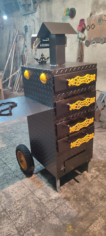 دستگاه بلال تنوری 3کشو.دارای یه کشو مخصوص انبار و گرم کن وپز پیتزا سیب زمینی و سوسیس و همبرگر.رنگ کوره ای استاتیک.میزکار تاشو بزرگ ورق سه میل 3میل عاج دار اصلی.چرخ فرقونی با میلگرد توپر.کلاهک بزرگ طبقاتی